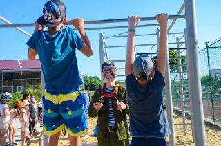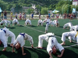 Крытый спортивный комплекс, оснащенный спортинвентарем и татами, а так же тренажерами является гордостью лагеря. Выбор спортивных площадок для игр порадует даже самых взыскательных спортсменов, тут и волейбол, и футбол, и теннисный корт и пионер бол, площадка с препятствиями и поле для гандбола.